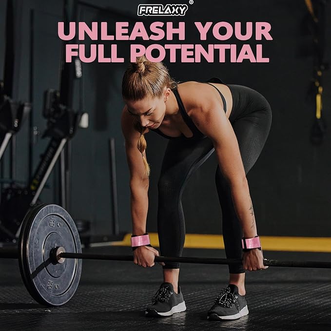 Frelaxy Lifting Wrist Straps Women and Men, Weight Lifting Grips with Cushion Wrist Loop, Double Layer Leather and Storage Pouch, Gym Workout Straps for Deadlift and Powerlifting