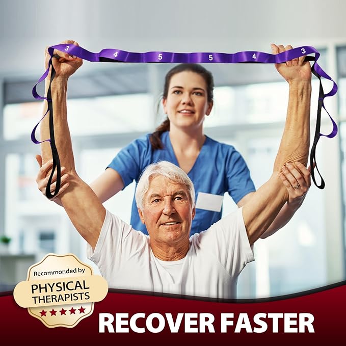 - 10 LOOPS FOR FULL-BODY STRETCHING – This yoga stretching strap achieve deeper stretches with 10 reinforced loops and 78 inch length and 1.5 inch width for customizable grip positions. Perfect for hamstrings, hips, shoulders, and back pain relief. Secure non-Elastic design holds any stretch intensity.Ideal for yoga poses, post-operative rehabilitation and exercise recovery