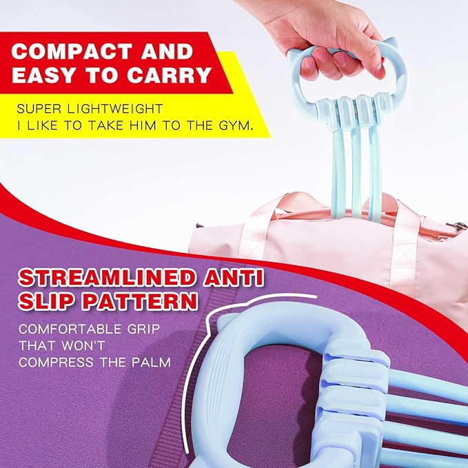 - 【New Upgrade Resistance Band】: The brand-new cat-inspired design features an ergonomic grip that feels comfortable while helping you maintain a firm hold. With 6 adjustable settings, it caters to everyone from beginners to experienced users. Plus, we've included 6 additional replacement tubes and a storage bag (12 tubes total) for easy swapping and on-the-go convenience. This resistance band is absolutely your ideal choice.