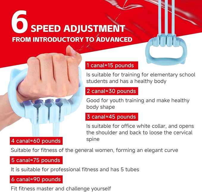 6 Gear Adjustable Resistance Bands, Fitness Resistance Bands Exercise Bands with Comfort Grips, Unisex, for Arms, Chest Extender, Home Workout, Fitness, Pilates