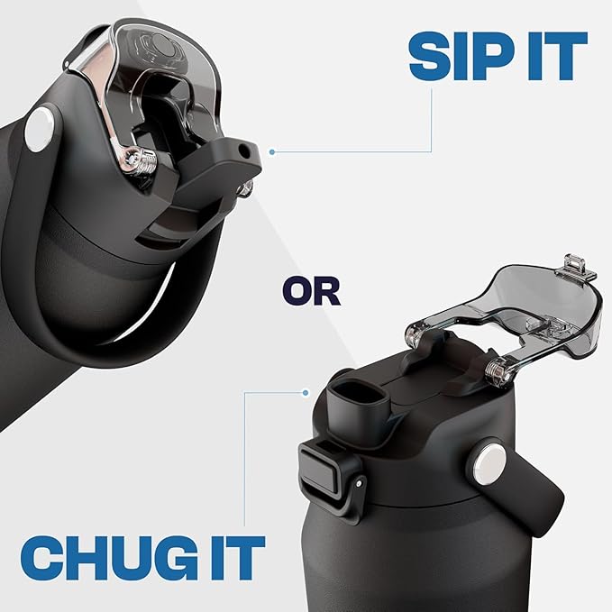 - ✔ Sip or Chug – Drink the Way You Want – The versatile dual-function lid gives you the freedom to sip slowly or chug fast, making it the perfect hydration bottle for athletes, fitness lovers, and busy professionals who need quick and easy hydration.