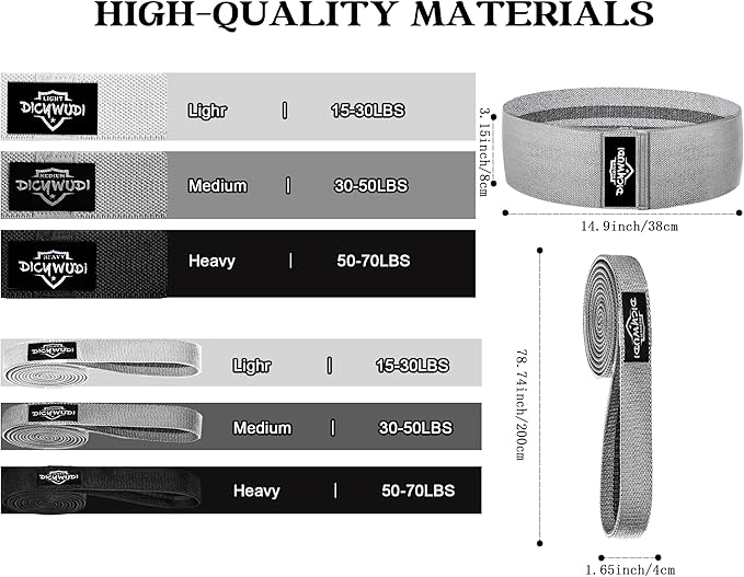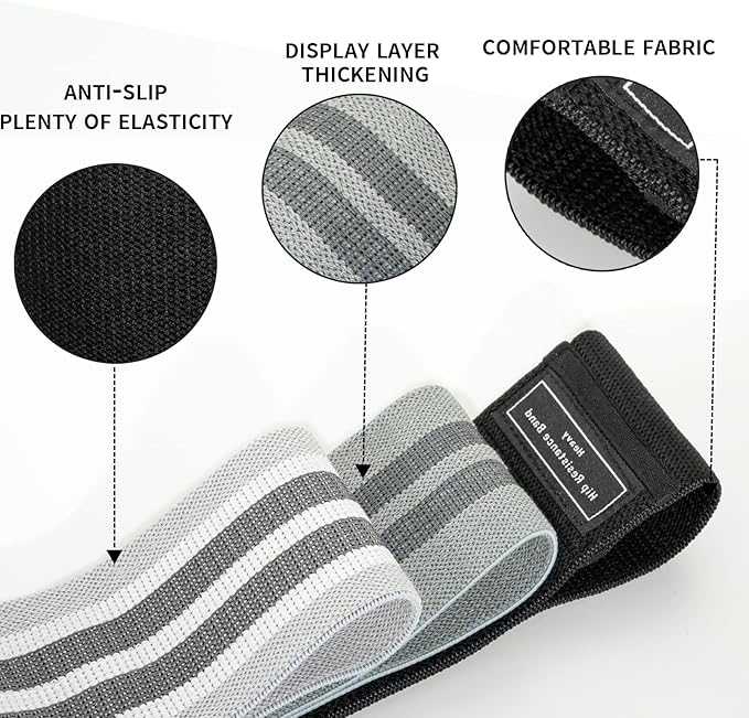 - 【3 RESISTANCE LEVELS】There are 3 different color resistance bands, the same size and different strengths. The cloth resistance bands provides greater flexibility and more sports selectivity for your exercise.