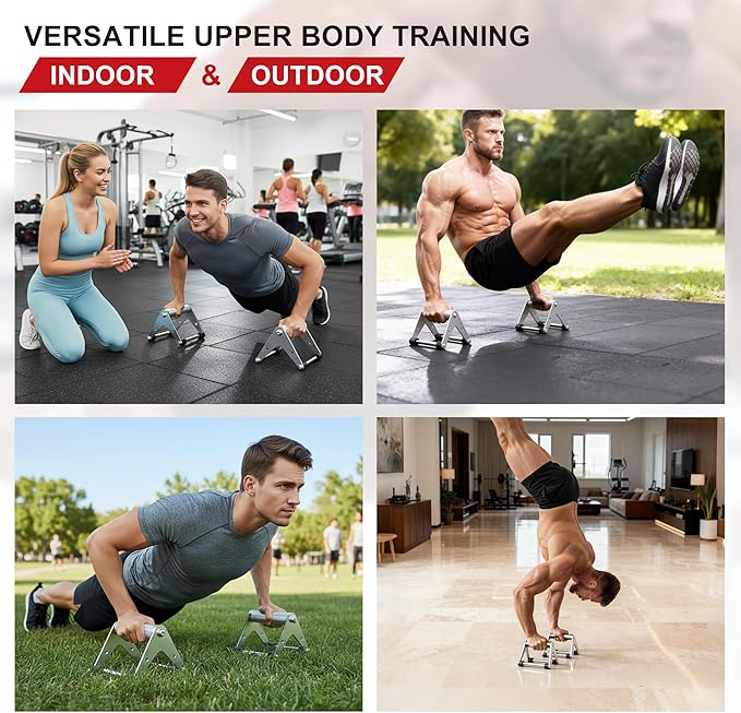 - Comprehensive Muscle Targeting & Versatile Training: Target chest, triceps, shoulders, and corewith exercises like L-sit, handstand push-ups, dips, and plank. This multifunctional push up bar is ideal for bodyweight training, calisthenics bars, and strength development.