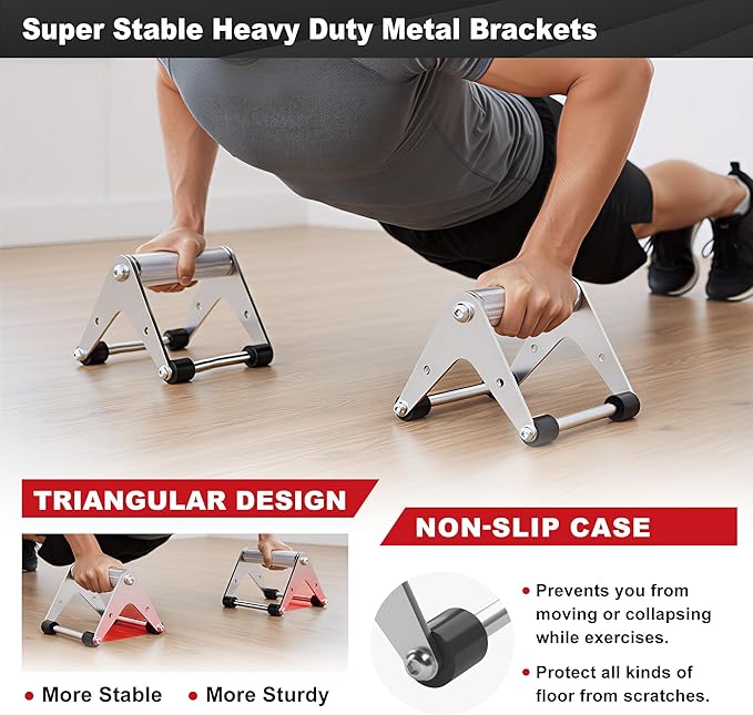 - Stable Triangular Push Up Bar & Maximum Stability: Our push up bar features a unique triangular base design that ensures exceptional non-slip stability during intense workout, preventing wobbling on any floor surface (tile, wood, carpet). Ideal for calisthenics and home gym equipment.