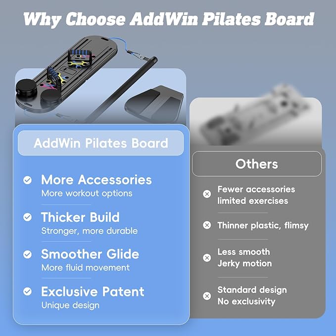 - 💪Your All in One Home Pilates Studio: Bring the Pilates studio experience home without a large machine or high cost. This versatile fitness board allows you to perform over 15 different exercises such as planks, squats, push ups, crunches, and dynamic movements on one low-profile platform. It engages your entire body, including your core, arms, legs, and back. Ideal for developing strength, supporting flexibility, and maintaining an active lifestyle whether you're at home or traveling.