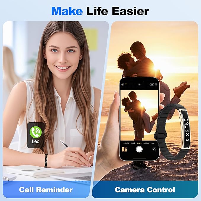 - 【16g Lightweight Double Strap】The smart bracelet for women and men features a minimalist design with a soft, skin-friendly magnetic silicone strap. A replacement strap is included to personalize and enhance the durability of your bracelet. Weighing only 16 grams, its ergonomic curved design conforms to the curve of the wrist, making it comfortable to wear all day, whether exercising, working, traveling, or sleeping, reducing wrist strain and fatigue.