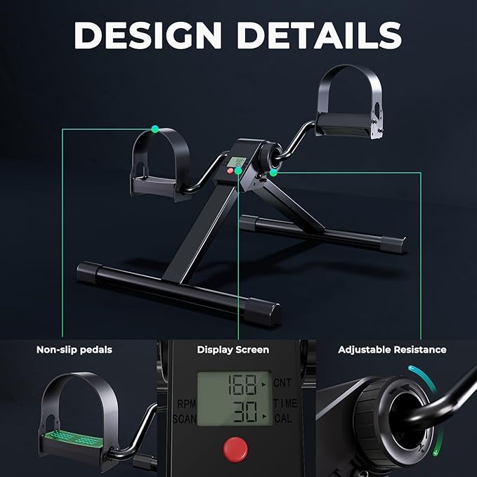 - 【Exercise Bike for Seniors】Designed especially for seniors, this portable pedal exerciser lets you customize your workout with a simple twist of its smooth resistance knob. Go as gentle or engaged as you like. Plus, it folds flat in seconds—so you can enjoy light fitness and rehab anywhere, at home or on the go