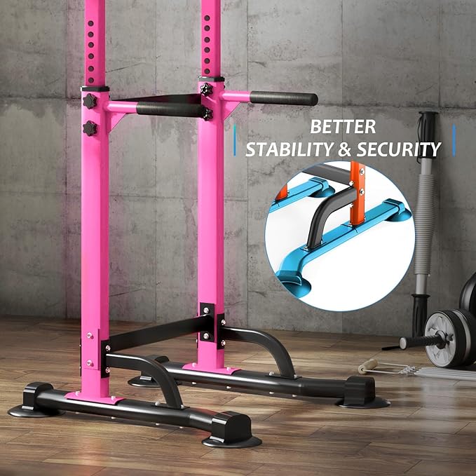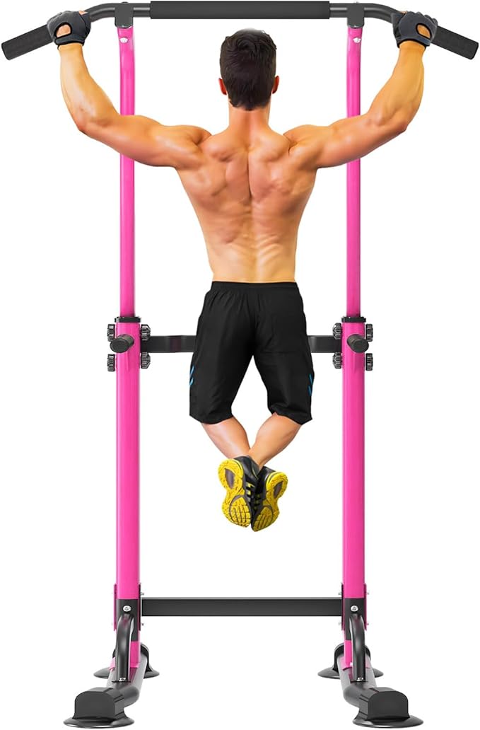 Adjustable Power Tower Pull Up Bar Dip Station, Free Standing Pull Up Rack Dip Station for Home Gym, 400LBS Capacity Height Heavy Duty Multi-Function Home Strength Training Fitness Workout Equipment
