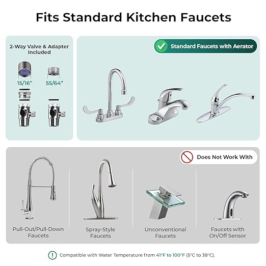 - Easy Installation – No drilling or permanent fixtures required. This compact countertop water filter connects directly to most kitchen sink faucets in minutes, making it perfect for apartments, RVs, or small spaces. Portable and hassle-free setup.