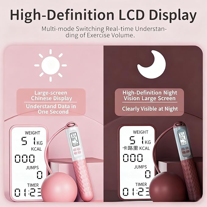 - Clear LCD Display: This indicatek skipping rope with counter features an easy-to-read lcd screen that shows jump count, exercise time, and calories burned, equipped with advanced counting sensors, cordless jump rope ensures highly precise jump tracking