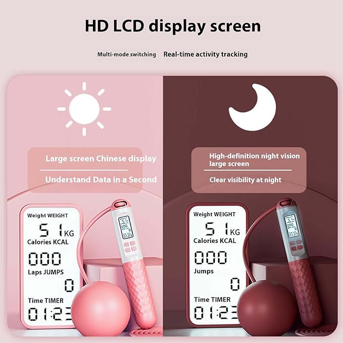 • 【Smart Digital Counter for Progress Tracking】Cordless weighted jump rope built-in digital counter tracks your jumps, calories burned, and workout duration, helping you stay motivated and monitor your fitness goals in real-time.