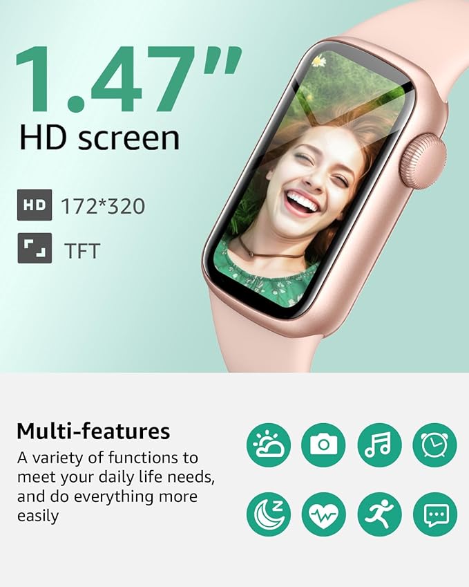 IMFRCHCS Fitness Tracker,Smart Watch with 1.47" Touch Display,137+Sport Modes Fitness Watch with Heart Rate Sleep Monitor, Step Counter,IP68 Waterproof Activity Trackers for Women Men