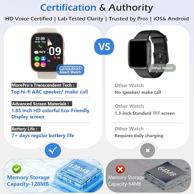 MorePro Health Fitness Tracker with 24/7 Heart Rate/Blood Pressure Monitor, Blood Oxy-gen/Sleep Tracking, 120+ Sports Activity Tracker, Smart Watch (Make/Answer Call) with Step Counter for Women Men