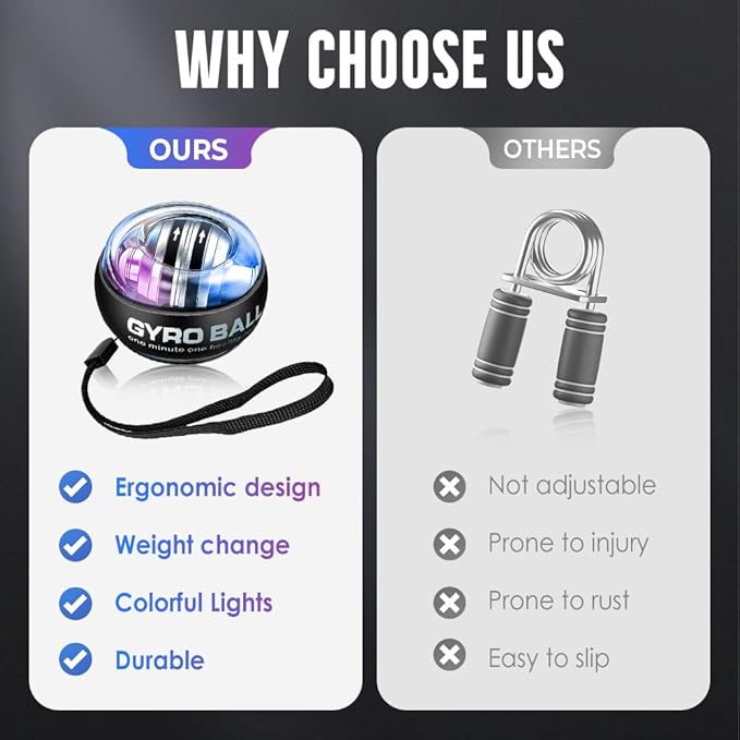 - Real-Time LCD Progress Tracking: A built-in LCD screen counts rotations (up to 20,000 RPM), allowing you to monitor improvements in grip strength and rotational speed with every session.