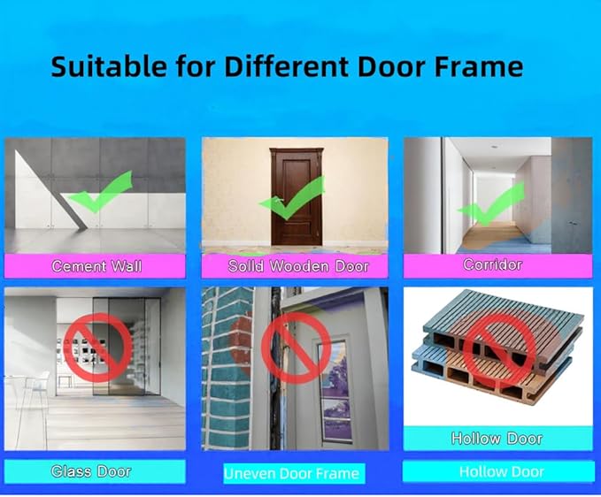 - 【Adjustable Width (27.6"-36.2") and Universal Fit】:Fits most standard doorways (70 cm-92 cm wide)—perfect for home, garage, or office use. Works on solid wood doors, security doors, and concrete walls (not suitable for fragile/glass door frames). No tools or drilling needed!