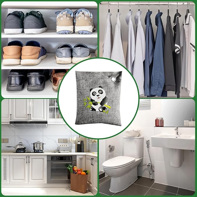 4 Pack charcoal odor absorber,Bamboo Charcoals Air Purifying Bag Charcoals Deodorizer Eliminator for Strong Odors in Car, Closet, Shoe, Basement (200G*4 Pack Panda, Unscented)