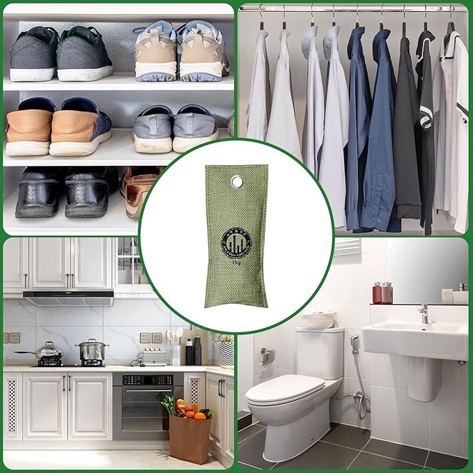 - 4 CHARCOAL DEODORIZER BAGS . Our bamboo charcoal bag musty smell eliminators are the perfect size to place wherever you have a bad smell: closet, car, shoes, gym bag, basement, pet areas.