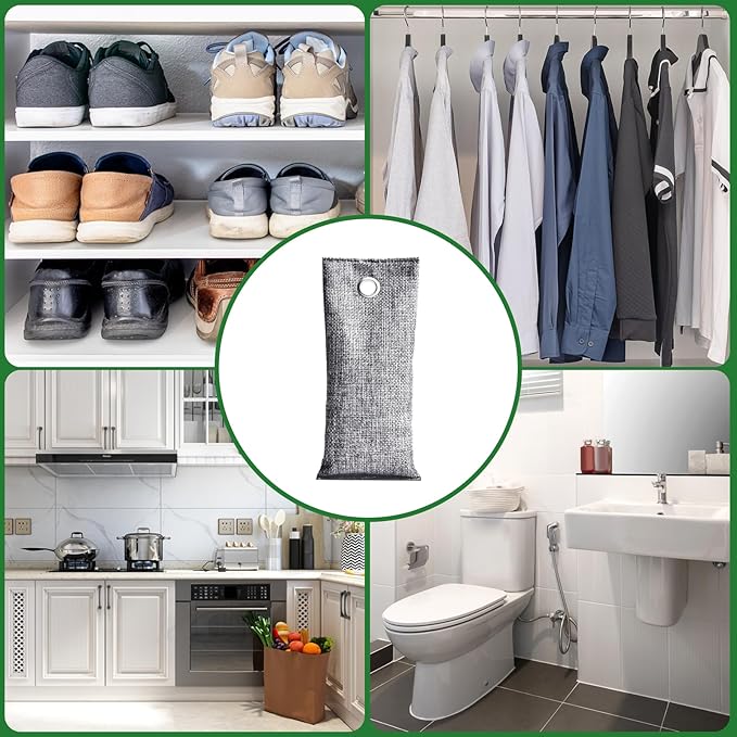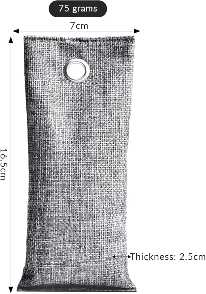 - 4 CHARCOAL DEODORIZER BAGS . Our bamboo charcoal bag musty smell eliminators are the perfect size to place wherever you have a bad smell: closet, car, shoes, gym bag, basement, pet areas.