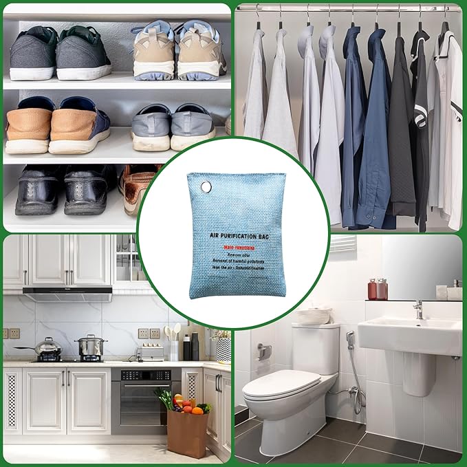 - 4 CHARCOAL DEODORIZER BAGS . Our bamboo charcoal bag musty smell eliminators are the perfect size to place wherever you have a bad smell: closet, car, shoes, gym bag, basement, pet areas.