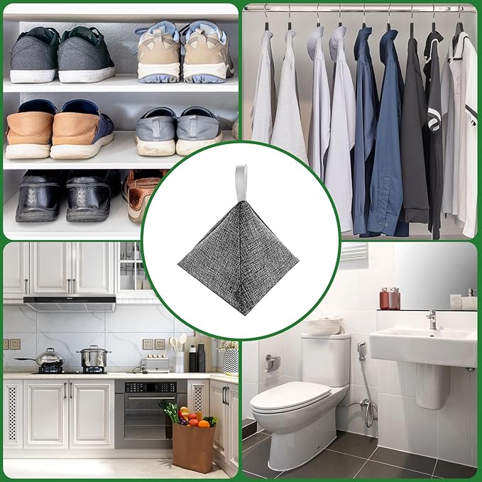- 4 CHARCOAL DEODORIZER BAGS . Our bamboo charcoal bag musty smell eliminators are the perfect size to place wherever you have a bad smell: closet, car, shoes, gym bag, basement, pet areas.