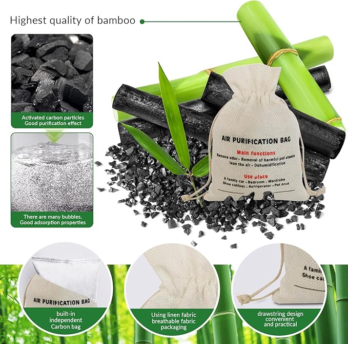 - NATURAL NON-TOXIC ODOR ELIMINATION. Our charcoal odor absorbers for home contain highly porous activated bamboo charcoal which binds to and removes bad smells.