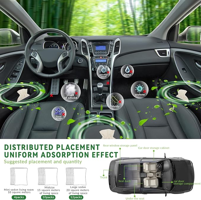 - ODOR ELIMINATOR FOR CAR. Pop a couple of our charcoal odor absorbers for car in your vehicle. After a few days these car deodorizers will have your ride smelling sweet! Use more car odor removers for bigger cars.