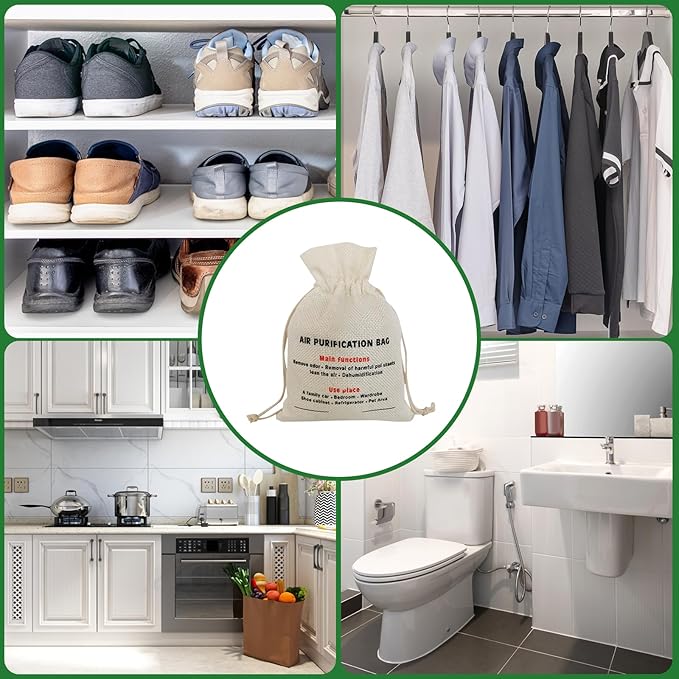 - 4 CHARCOAL DEODORIZER BAGS . Our bamboo charcoal bag musty smell eliminators are the perfect size to place wherever you have a bad smell: closet, car, shoes, gym bag, basement, pet areas.