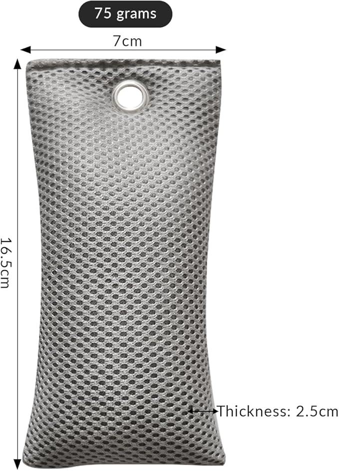 - 4 CHARCOAL DEODORIZER BAGS . Our bamboo charcoal bag musty smell eliminators are the perfect size to place wherever you have a bad smell: closet, car, shoes, gym bag, basement, pet areas.