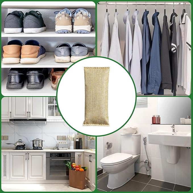 - 4 CHARCOAL DEODORIZER BAGS . Our bamboo charcoal bag musty smell eliminators are the perfect size to place wherever you have a bad smell: closet, car, shoes, gym bag, basement, pet areas.
